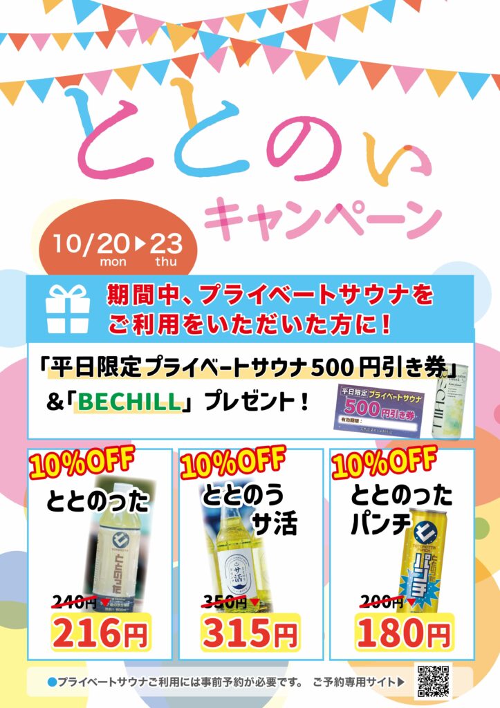 「平日限定プライベートサウナ500円引き券」&「BECHILL」をプレゼント!