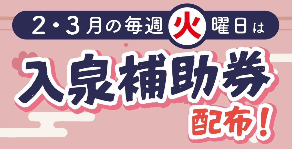 ・ 【 ♨️入泉補助券配布♨️ 】2月・3月の毎週 火 曜日、現金・電子マネー・回数券でご入館いただいたお客様へ1名様につき1枚「入泉招待券」をプレゼント🎁 ♨️ 「入泉招待券」を5枚集めると、ゆらぶ桐生店の大浴場利用…